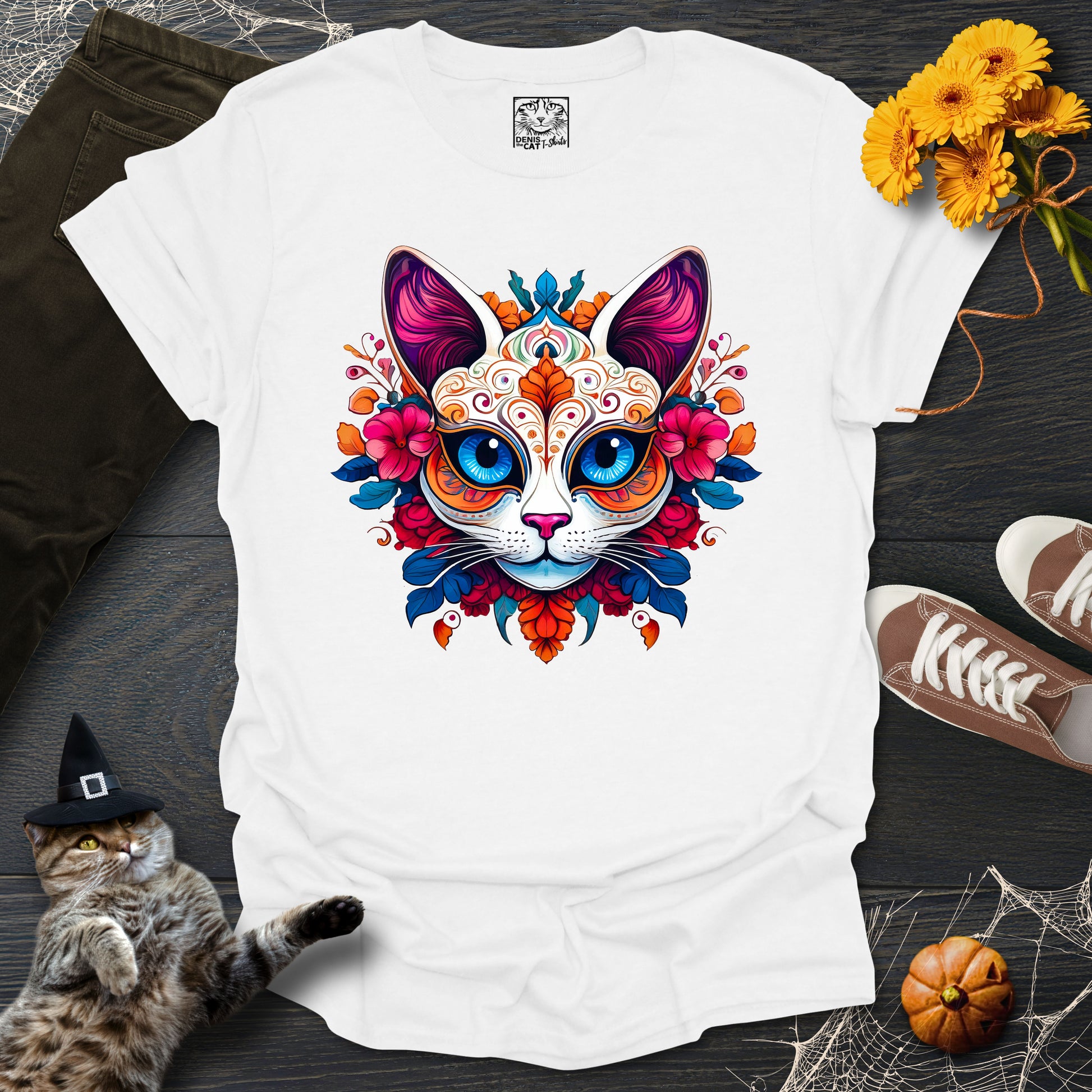 A vibrant Catrina Cat design celebrating life, color, and creativity — where feline elegance meets Día de los Muertos art.