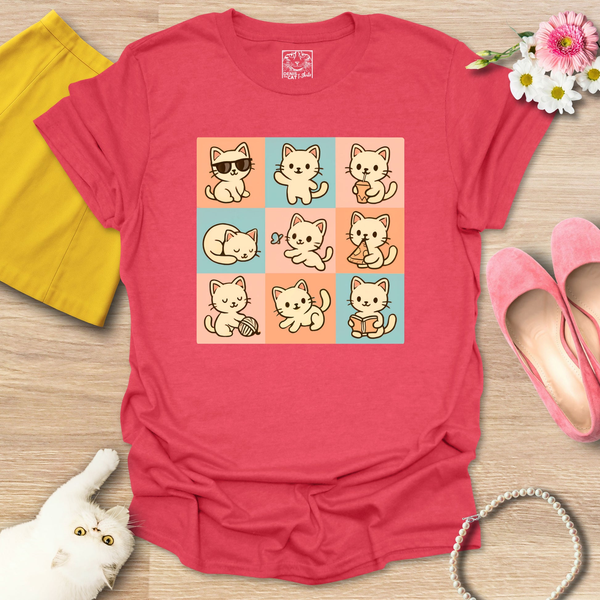 Nine adorable kitty moods in one tee – from naps to pizza. A fun kawaii cat shirt for cat lovers who see themselves in every kitty.