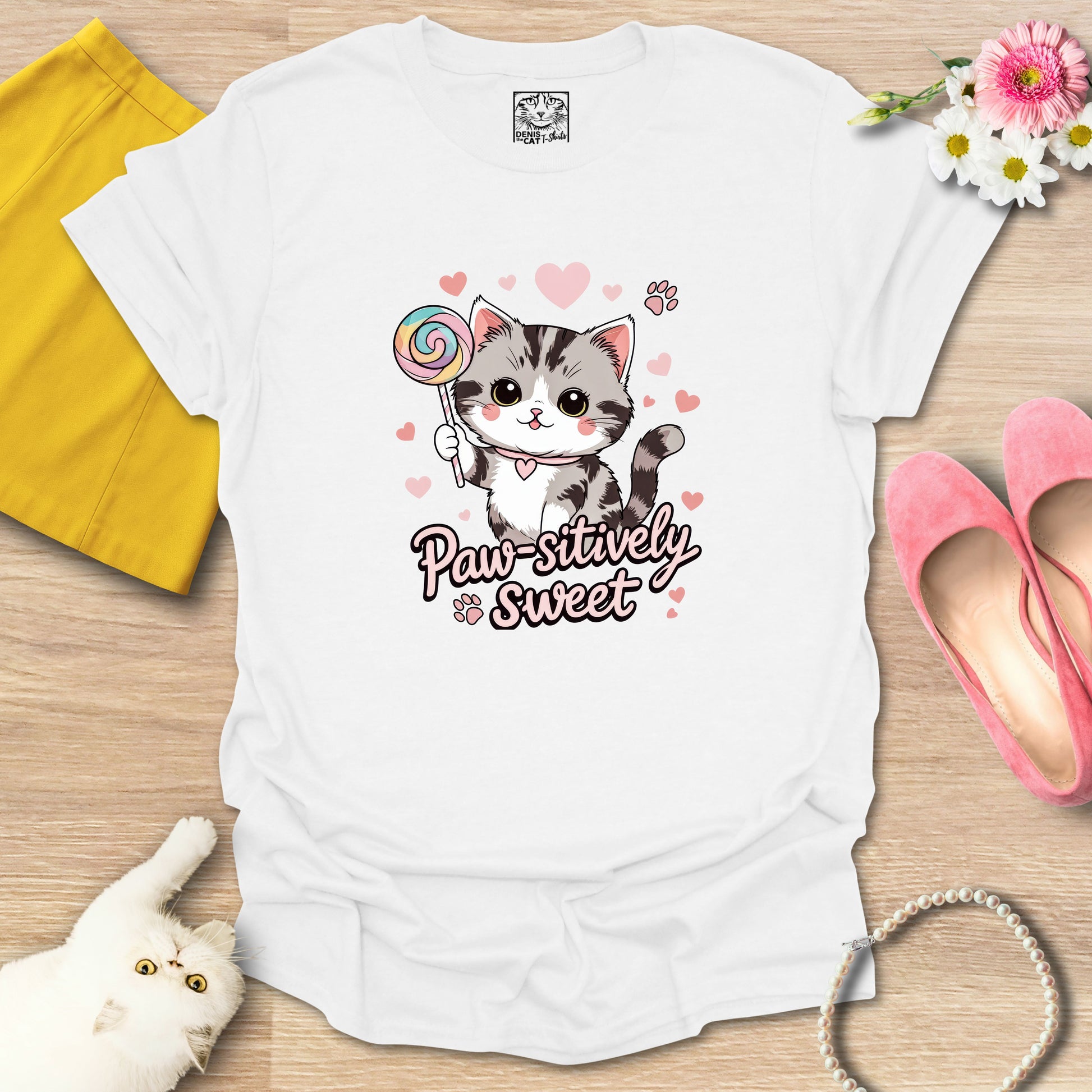 Charming kitty with a pastel lollipop and hearts. A paw-sitively cute kawaii tee for cat lovers with a sweet tooth.