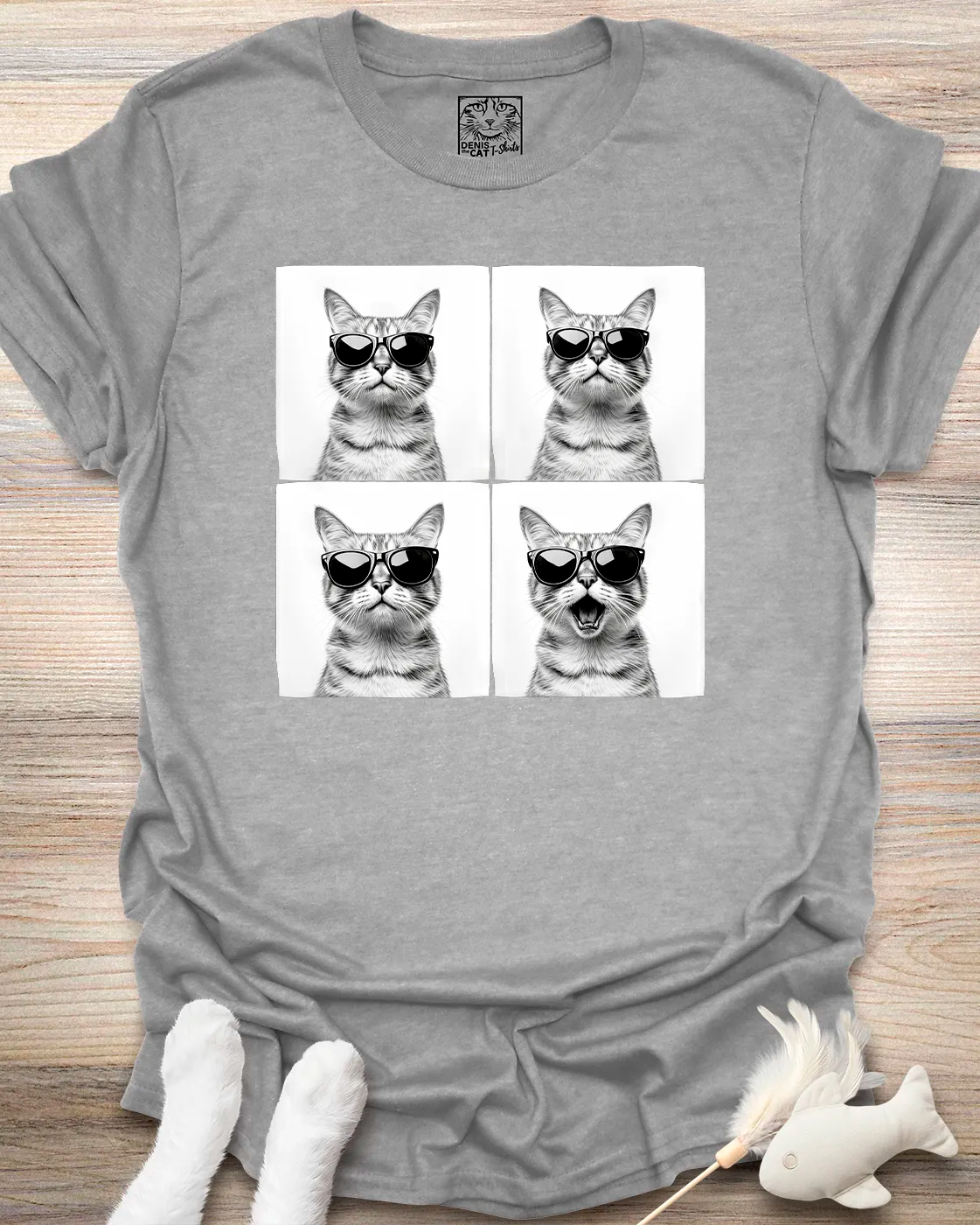 Classic photo booth vibes with one stylish cat in four poses. A retro-cool tee for cat lovers with attitude.