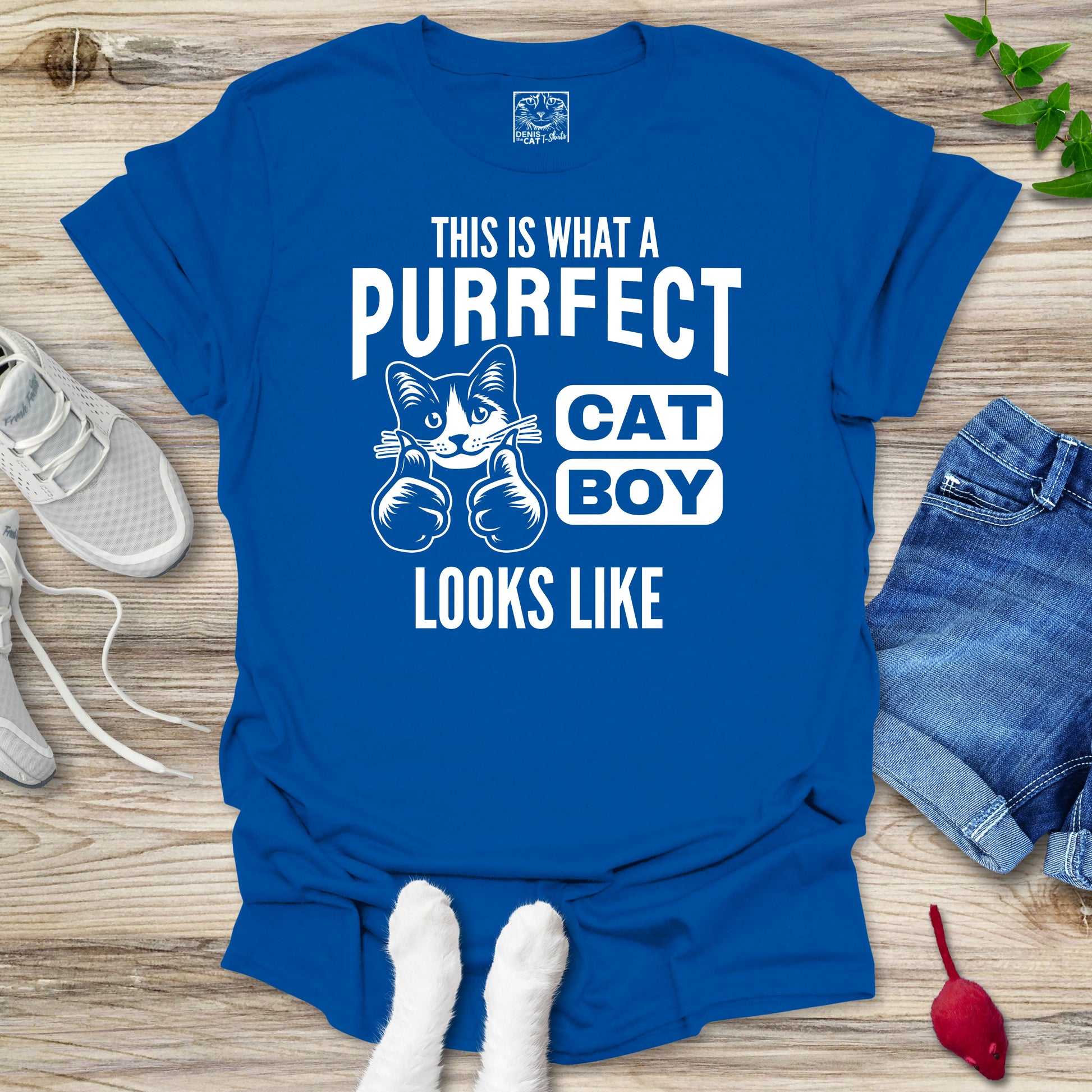 This playful t-shirt design celebrates boys who love cats, perfect for cat fans of all ages. Featuring a charming cat-themed style, it's ideal for showing cat pride on special occasions or any day.