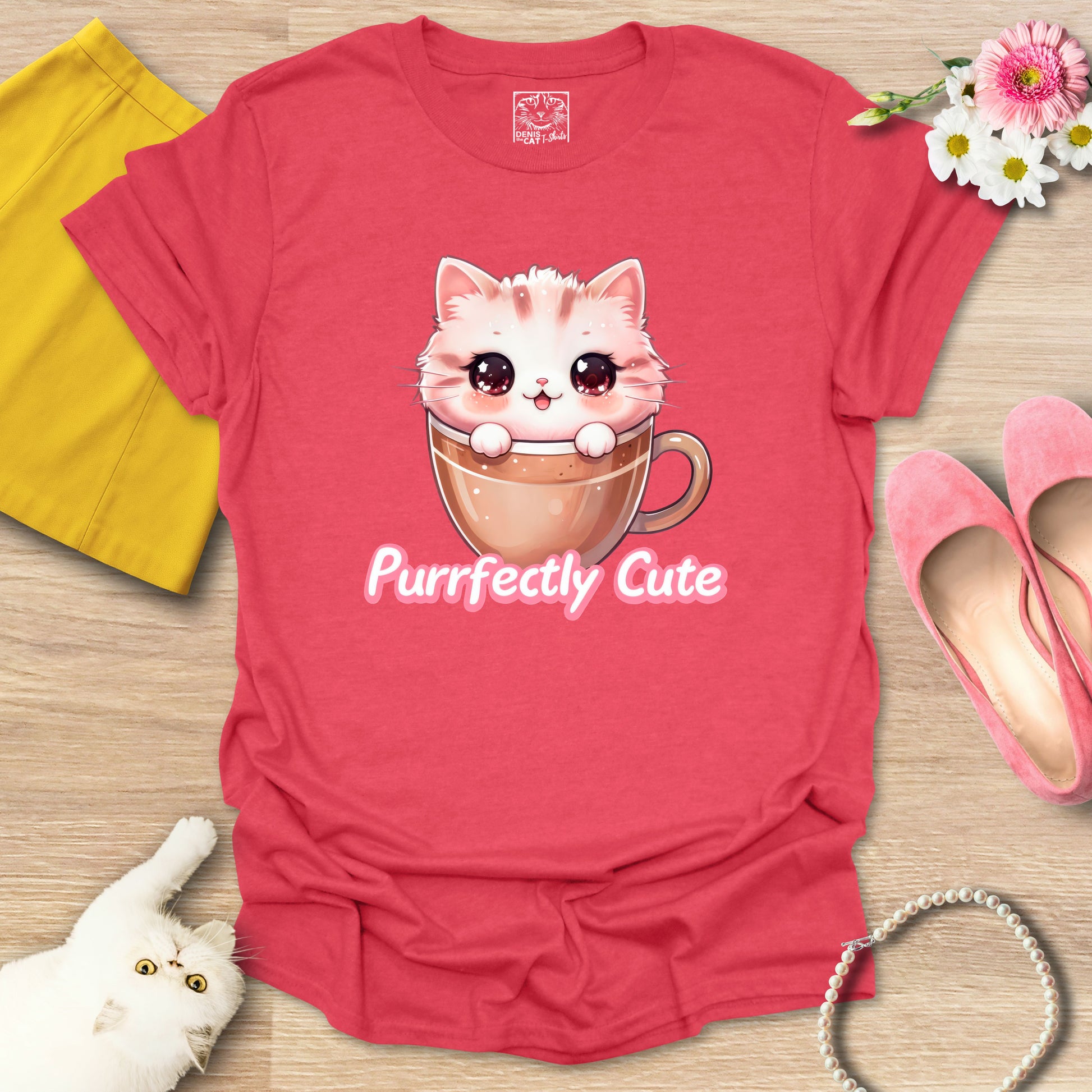An irresistibly sweet tee featuring a fluffy kitten in a cup—perfect for cat lovers who adore kawaii style.