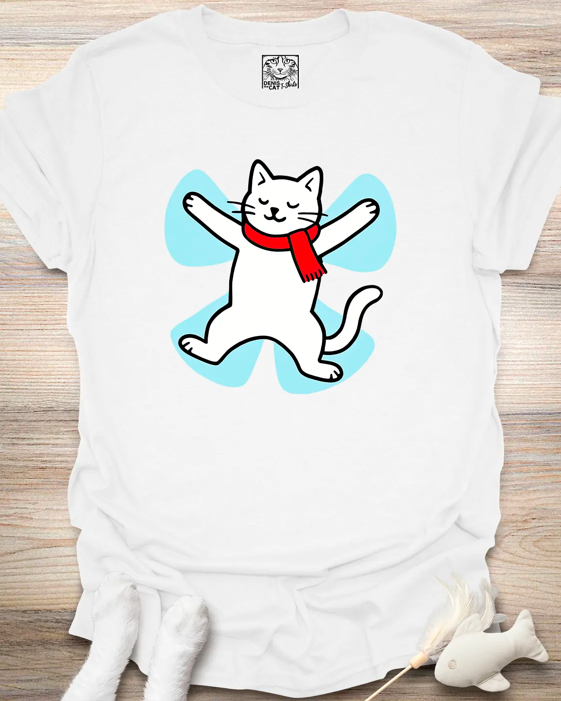 A happy cat making a snow angel, cute, cozy, and pure winter joy. The perfect tee for cat lovers who adore snowy-season fun.